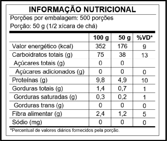 Enriquecida com ferro e ácido fólico. CONTÉM GLÚTEN.