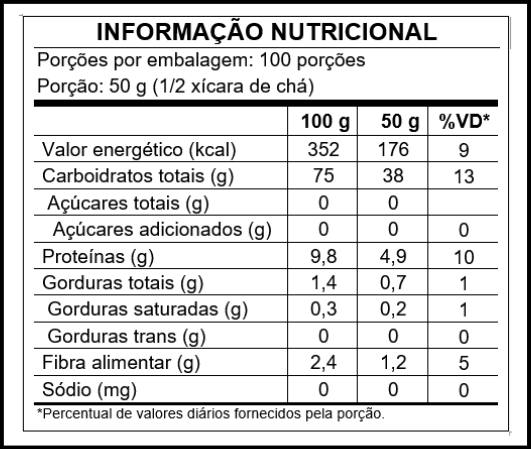 Enriquecida com ferro e ácido fólico. CONTÉM GLÚTEN.