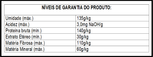 Validade e conservação: 90 Dias após a data de fabricação. Manter o produto em lugar fresco, seco e arejado. Fechar bem a embalagem após cada uso. Embalagem ráfia 40kg.