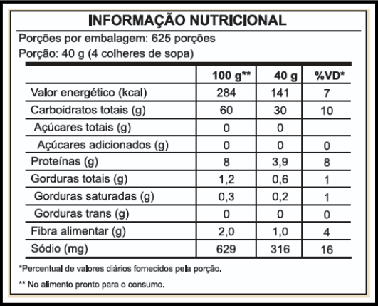 Validade e conservação: 90 Dias após a data de fabricação. Manter o produto em lugar fresco, seco e arejado. Fechar bem a embalagem após cada uso. Embalagem Ráfia ou Papel 25kg.