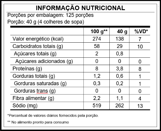 Validade e conservação: 90 Dias após a data de fabricação. Manter o produto em lugar fresco, seco e arejado. Fechar bem a embalagem após cada uso. Embalagem plástica 5kg.